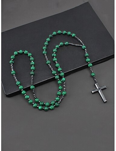 Collana con ciondolo a croce in pietra naturale natalizia da uomo, disponibile in più colori, design elegante e alla moda, perfetta come regalo per le feste