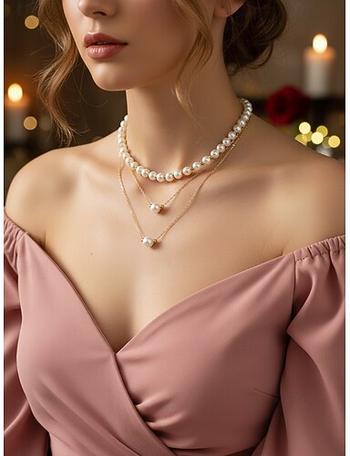 3 Pezzi Collana Collana di Perle For Per donna Streetwear Regalo Quotidiano Lega Classico