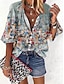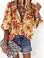 Carnevale Per donna Blusa Bottoni Stampato Ombre Floreale Grafico Bohemien Quotidiano Casual Manica Corta Manica 3/4 Scollo a V Collo Alto Top Regolari Blu Viola Arancione Estate Primavera