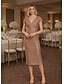 Tubino Colonna Lunghezza Tè Vestito da Festa Abito da Cocktail Abito da sposa Elegante Manica Corta Scollo a V Formale Ospite di nozze Con Paillettes con Glitter