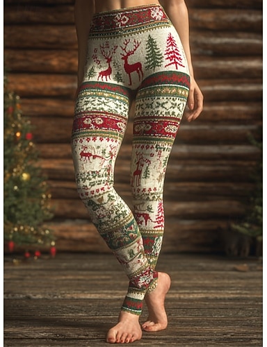 Leggings per Donne Natale Vacanza Vintage Stile Etnico Lunghezza Completa Vita Alta Pantaloni Brutti Grafica Alce Stampa 3D Asciugatura Rapida Traspirabilità Morbida Elastico All'aperto Casa Causale