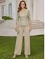 Tuta Completo Pantalone Tre Pezzi Completo Pantalone Lunghezza al pavimento Abito da cerimonia per signora Manica Lunga Collo quadrato Elegante Vintage Semplice Formale Ospite di nozze Chiffon Raso