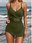 Costume da bagno intero donna arricciato sexy con ritagli e gonna monokini controllo della pancia vita alta slim con schiena scoperta per vacanze al mare colore solido scollo a V senza maniche