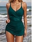 Costume da bagno intero da donna snellente arricciato sexy con taglio monokini rete controllo della pancia alto in vita schiena scoperta per vacanze al mare color solido colletto a V e senza maniche
