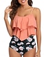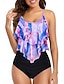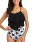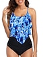 Costume da bagno a due pezzi Tankini da donna Slip Controllo Pancia Vita Alta Slim Schiena Nuda Vacanza Mare Abbigliamento Floreale Collo a Rete Senza Maniche