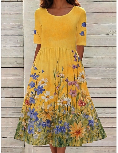 Per donna Abito Midi Abito a Tubino Vacanza Casual Boho Quotidiano Abito Estivo Abito Primaverile Vestibilità regolare Floreale Grafico Manica Corta Girocollo Giallo Rosa Azzurro cielo Viola chiaro