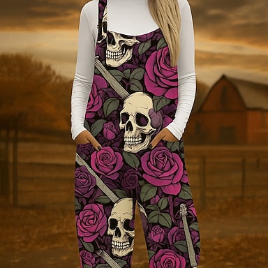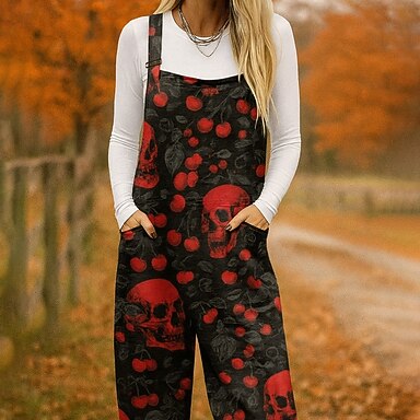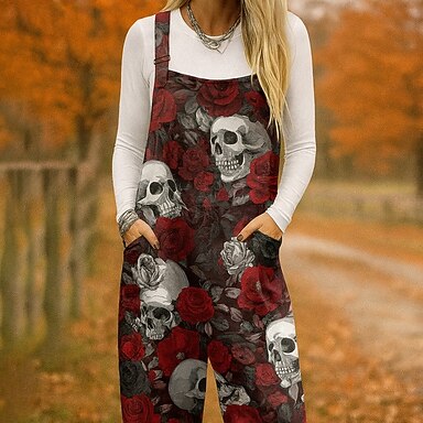 Salopette da donna Leggera Floreale Senza Maniche Gamba Larga Collo Rotondo Tasche Vacanza Quotidiana Vestibilità Larga Nera Bianca Rossa Autunno