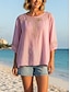 Per donna Blusa Camicia di cotone Finto cotone e lino Traforato Tinta unica Quotidiano Elegante Essenziale Manica 3/4 Girocollo Top Regolari Quotidiano Bianco Rosa Estate Primavera Autunno