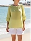 Per donna Blusa Finto cotone e lino Tasca Bottoni Tinta unica Elegante Casual Manica 3/4 Scollo a V Top lunghi Quotidiano Blu Bianco Giallo Rosa Rosso Estate Primavera Autunno