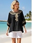 Per donna Blusa 100% cotone Ricamato Floreale Elegante Essenziale Casual Manica 3/4 Girocollo Top Regolari Quotidiano Nero Rosa Verde Estate Primavera