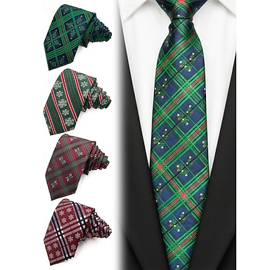 cravatte natalizie da uomo, motivi festivi, plaid rosso e verde, fiocchi di neve, pronte per essere regalate, molteplici modelli per feste di Natale e abbigliamento da ufficio