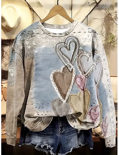 Per donna Maglietta Stampato Cuore Grafico Vintage Elegante Classico Manica Lunga Girocollo Top Regolari Quotidiano Blu Viola Verde Primavera Autunno Inverno