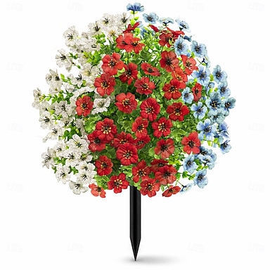 Decorazione patriottica a forma di topiarie con fiori artificiali da 22 pollici con paletto, per il 4 luglio, il Memorial Day e il 250° anniversario degli Stati Uniti, sfera floreale artificiale