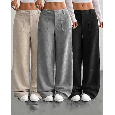 Per donna Culotte Gamba Larga Chinos Streetwear Casual Lunghezza intera Vita media Semplice Tasca Elastico in vita Confortevole Inelastico Quotidiano All'aperto Vacanza Aalbicocca Grigio Blu marina