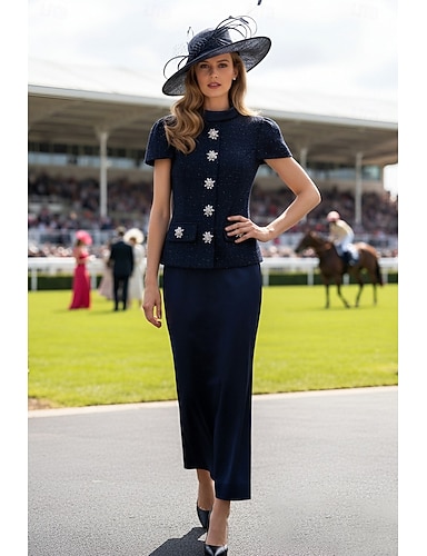 Sirena Tromba Lunghezza alla caviglia Abito Derby Abito da cerimonia per signora Manica Corta Collo Alto Elegante Derby del Kentucky con Fiore