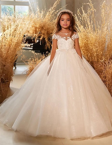 Vestito da damigella d'onore per bambine, vestito da prima comunione, tinta unita, manica lunga, formale, da cerimonia, da sposa, elegante, in rete, in pizzo, da principessa, lungo, a tubino, in tulle, estate, primavera, autunno