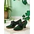 décolleté da donna in pelle scamosciata verde con fiocco nero, elegante punta affilata, stile vintage anni '20, perfette per eventi formali, cene e matrimoni
