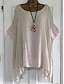 Per donna Finto cotone e lino Tinta unica Semplice Elegante Bohemien Vintage Manica Corta Top Regolari Bianco Verde chiaro Azzurro cielo Estate Primavera Autunno Inverno