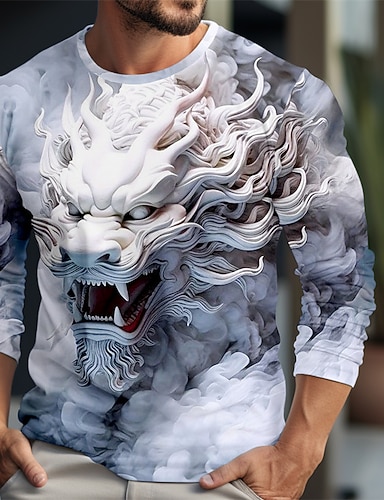 Per uomo Drago Maglietta Manica Lunga maglietta Stampa 3D Girocollo Camicia Moda Esagerato Streetwear Casuale Quotidiano Blu Estate Primavera Abbigliamento S M L XL XXL XXXL