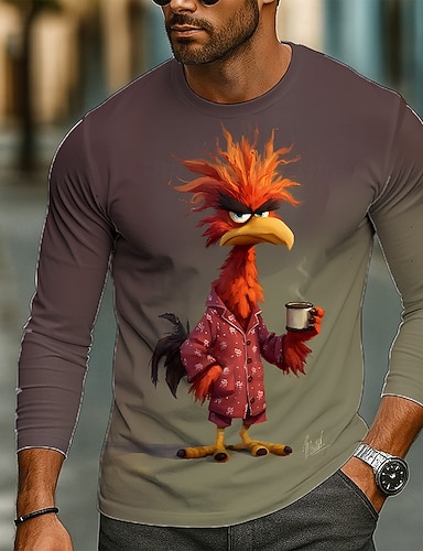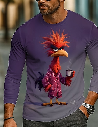 Per uomo Animale Divertente Maglietta Manica Lunga maglietta Stampa 3D Girocollo Camicia Moda Essenziale Casuale Quotidiano Streetwear Blu Viola Marrone Estate Primavera Abbigliamento S M L XL XXL