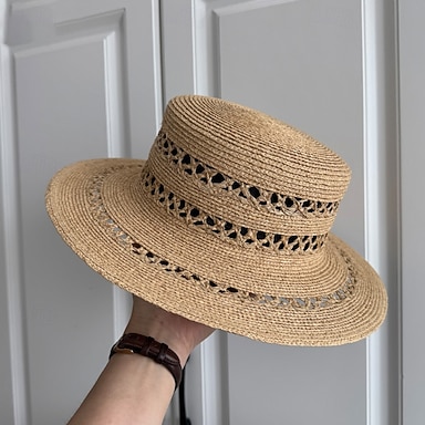 Cappelli Paglia Cappello di paglia Matrimonio Ferie Tè Corsa di Cavalli Cocktail Elegante Vintage Fatto a mano Con Forato Copricapo Copricapo