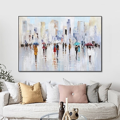 dipinto a olio fatto a mano su tela decorazione murale arte di strada astratta pedoni con ombrelli sotto la pioggia per arredamento casa dipinto arrotolato senza cornice non allungato