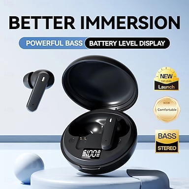 Auricolari wireless Bluetooth 6.0, cuffie stereo TWS con bassi potenti, custodia di ricarica con display digitale a LED, auricolari comodi con cancellazione del rumore per corsa, allenamento, iPhone e