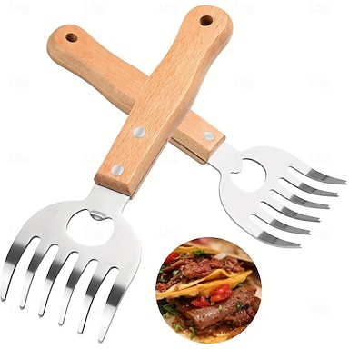 2 pezzi di tritacarne a forma di artiglio d'orso in acciaio inossidabile, strumento per barbecue con manico in legno, divisore di carne, frullatore per alimenti, apribottiglie