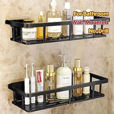 Mensola da parete nera senza foratura da 2 pezzi - mensola da doccia in plastica impermeabile e resistente, mensola salvaspazio per il bagno, adatta a bagni piccoli, facile installazione con