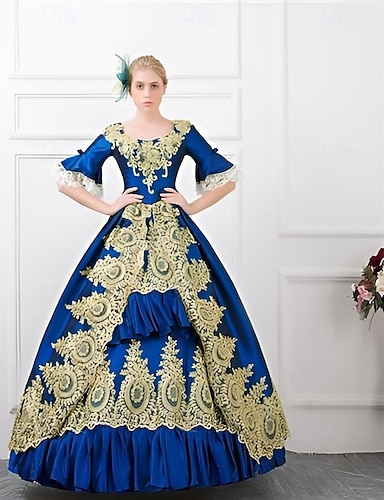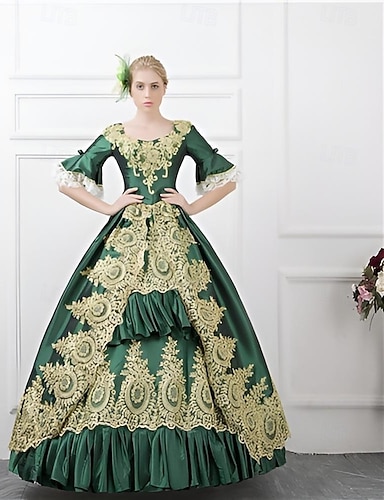 Abito Rococò Barocco Vittoriano Lunghezza al pavimento Vestito Costume da festa Mascherata Taglie Forti Sposa Patchwork Fiore Abito da ballo Costume Per donna Matrimonio Feste Halloween Adulti Vestito