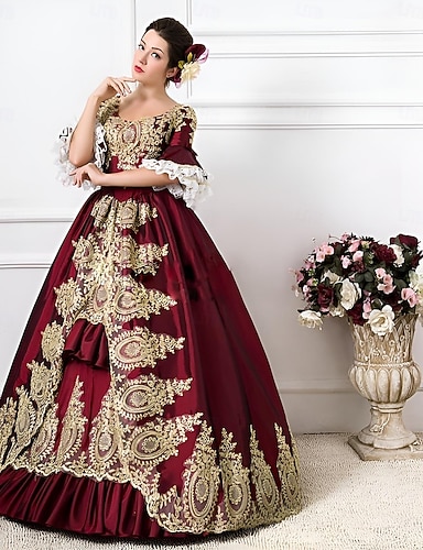 Rococò Barocco Abito da Ballo Lunghezza al pavimento Vestito Abito da Ballo Lunghe Principessa Sposa Floreale Abito da ballo Collo quadrato Costume Per donna Reale Halloween Carnevale Mascherata