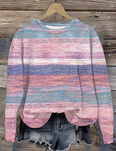 T-shirt donna manica lunga collo rotondo tunica grafica a righe elegante vintage top regolari stampa quotidiana per uscire weekend rosa blu viola arancione verde preautunnale