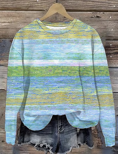 T shirt donna manica lunga girocollo tunica ombre grafica texture vintage elegante moderna girocollo top regolari stampa quotidiana blu viola arancione verde autunno prefal