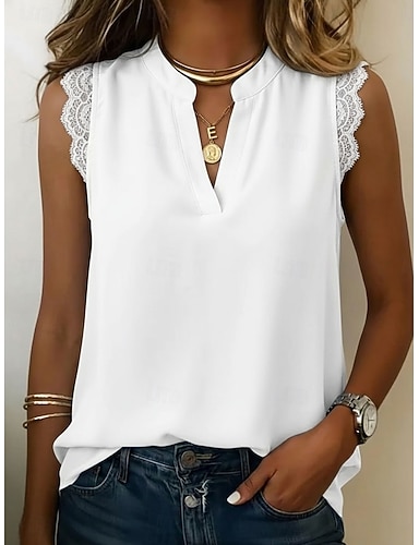 Per donna Camicia di Pizzo Blusa Top in chiffon Patchwork Semplice Elegante Vacanza Senza Maniche Scollo a V Top lunghi Casuale Stampa bianca Rosa Verde Beige Estate