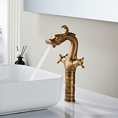 Rubinetto per lavabo - Classico Ottone Antico / Galvanizzato Set centrale Due maniglie un foroBath Taps