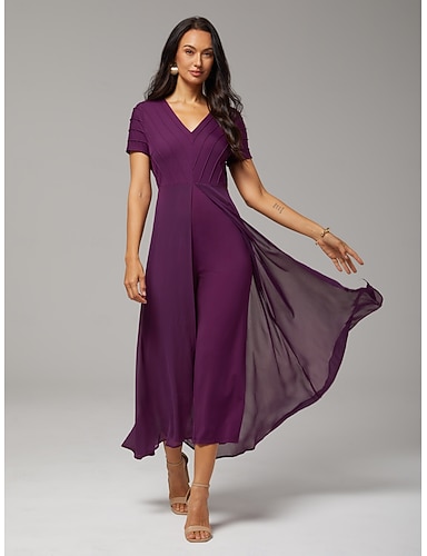 tuta da donna verde scuro con scollo a V, design a pannelli, finto due pezzi, fluido, trasparente, tessuto elasticizzato, destinazione per invitati a matrimoni, primavera estate autunno