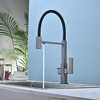 Rubinetto da cucina 3 in 1 in nichel spazzolato con beccuccio per acqua potabile, rubinetto da cucina estraibile a 3 vie con doccetta a due maniglie e aggancio magnetico per sistema di filtrazione dell'acqua o rubinetto per riempire pentole.