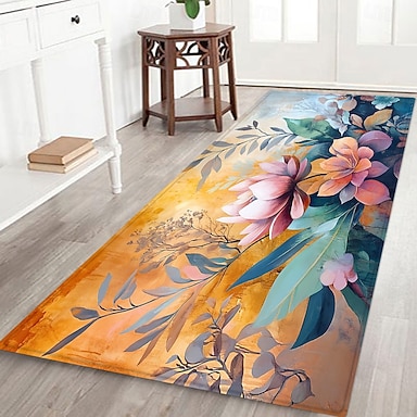 tappeto da corridoio antiscivolo con motivo a foglie e fiori, zerbino stampato in tessuto di flanella per ingresso, bagno e arredamento per la casa