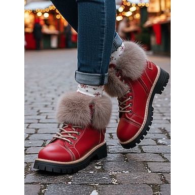 stivaletti da donna con bordo in pelliccia rossa - caldi stivali invernali con morbida pelliccia sintetica per passeggiate all'aperto, eventi natalizi e moda invernale casual