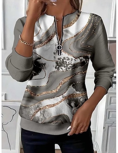Per donna Felpa Pullover Felpe con cerniera Patchwork Cerniera Stampato Grafico Geometrico Astratto Moda Casual Manica Lunga Girocollo Top Regolari Streetwear Abbigliamento Quotidiano Grigio scuro