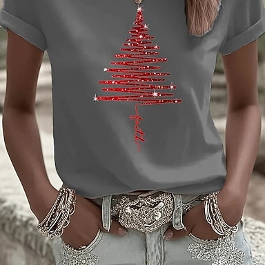 Felpa Pullover Donna Natale Magliette Grafica Albero Moda Casual Manica Lunga Collo Crew Regular Tops Street Quotidiana Stampa Rosa Blu Viola Oro Verde Primavera Autunno Inverno