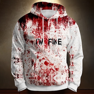 Per uomo Schizzi di sangue 3D Macchie di sangue Felpe con cappuccio Felpa Punk Esagerato Gotico Casual Manica Lunga Girocollo Con Cappuccio Club Abbigliamento casual alla moda Bianco 1 Bianco Bianco 2