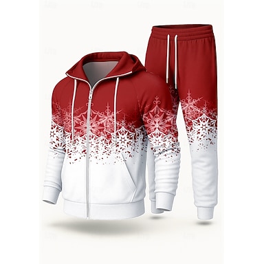Natale Per uomo Felpa con cappuccio Tuta da Ginnastica Tuta da 2 pezzi Coulisse Con zip Gradiente di Colore Completo Abbigliamento Autunno Inverno Nero Rosso Lavoro All'aperto Viaggio Leggero Di
