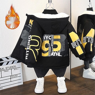 Ragazzi 3D Grafico Lettera Set Felpa con cappuccio & Pantaloni della tuta Tuta sportiva Tute da ginnastica Manica Lunga Primavera Autunno Quotidiano Essenziale Casual Bambini 4-12 Anni Con cappuccio
