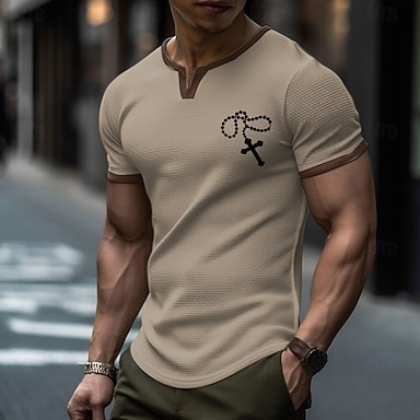 Per uomo maglietta Camicia Henley Camicia d'epoca Vintage Originale Essenziale Camicia Croce Templare Croce Manica corta Camicia Nero Cachi Grigio Esterno Giornaliero Sport Henley Estate Abbigliamento