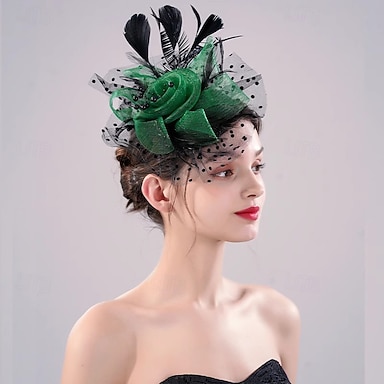 Fascinatori in rete a fiore e piuma Cappello Kentucky Copricapo Orlo 1 PC Corse di cavalli Ladies Day Corso di cavalli Elegante e lussuoso con fascia per capelli da impressionare Abito per giorno