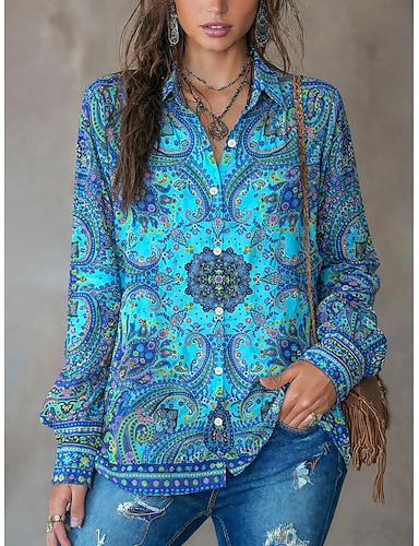 Per donna Camicia Bottoni Stampato Grafico Paisley Vintage Elegante Moderno Manica Lunga Colletto a Camicia Top Regolari Quotidiano Blu Rosso Arancione Verde Estate Primavera
