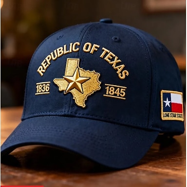 Cappello da baseball della Repubblica del Texas, cappello ricamato con stella del Texas, cappello dello Stato della Stella Solitaria, 1836-1845, blu navy con toppa con bandiera del Texas, regolabile
