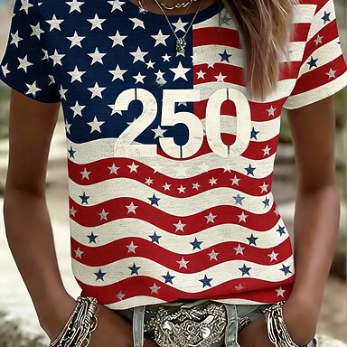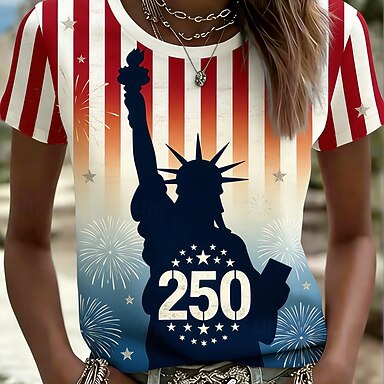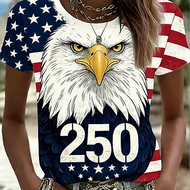 Maglietta Donna Patriottica Americana Festa dell'Indipendenza Stampa Grafica Fiori Lettera Elegante Classica Casual Maniche Corte Girocollo Regolari Tops Quotidiani Nero Bianco Rosso Estate Primavera
