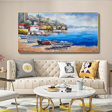 dipinto a olio fatto a mano su tela decorazione della parete di arte paesaggio mediterraneo per la casa orizzontale soggiorno arredamento arrotolato senza cornice pittura non stirata
